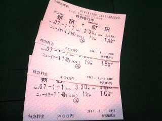新年早々初詣へ行った折りの帰りのロマンスカーの特急券を。