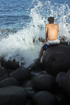 岩場から冷たい荒れた波間をぬって海を漂い、